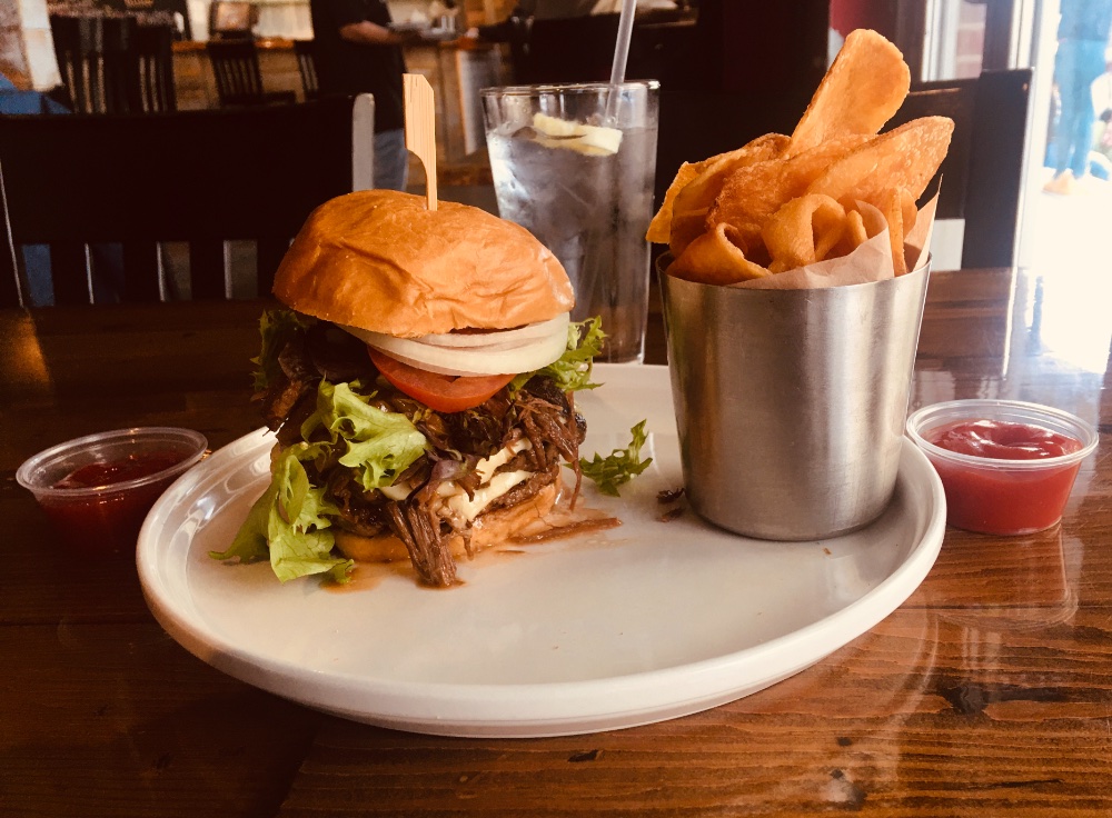 I hit the beloved Wingcraft gastropub today to celebrate my premium quad hit with a premium burger. The short rib double burger has melted American, arugula, tomato, onion (raw and caramelized) and comes with chips. Three bucks for fries “upgrade”. It is tall and moist, with a thin layer of brisket over the patties. No gristle or char. I was barely aware that it was a burger, as it was so effortlessly consumed. Wingcraft was judged the #1 South Jersey burger by AC Weekly. The Pat LaFrieda blend doesn’t lend itself to copycats. I enjoyed it and would try them all. The chips had no zip. It was a generous portion of sorry spuds, cardboard potatoes as dry as pita chips. These terrible taters are certainly not worth the calories. The beer list is astounding. I already indulged with Amstel at Caesars, saving the calories and expense. Seating is tricky on weekends, as 100% seating comes soon. I gave my number and waited ten minutes on the nearby USMC themed Tun Tavern patio. Sorry, semper fi. $20 plus tip is a hefty burger tab. Only premium hits justify the price and walk up to Baltic Avenue. I’m not Mr. Monopoly.