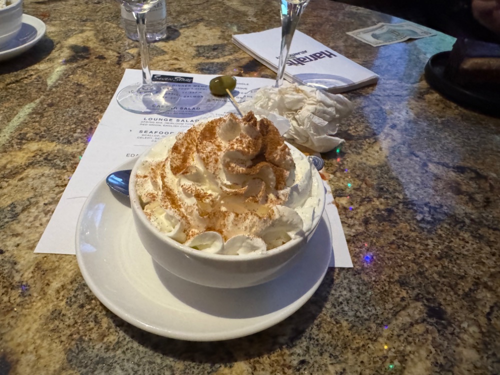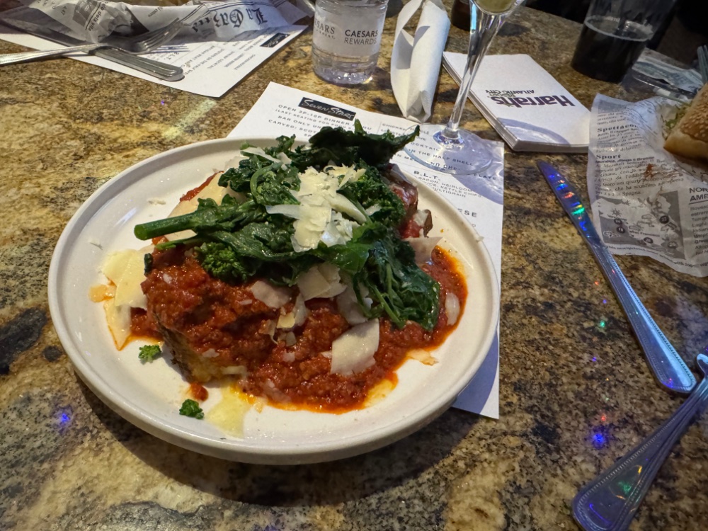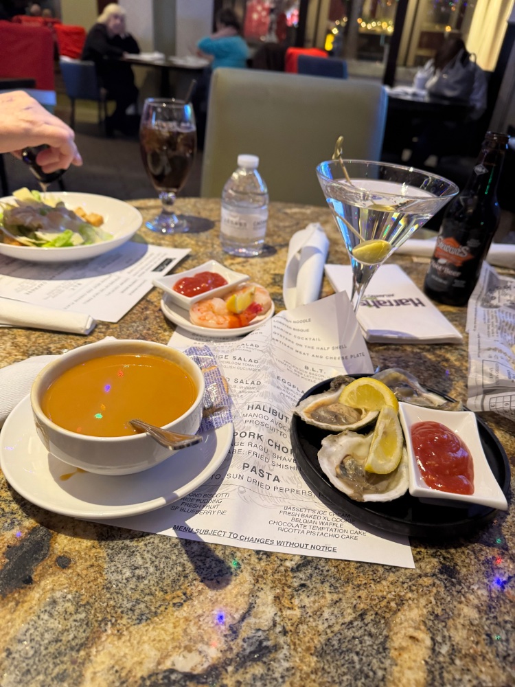 Another decent trip to Harrahs’s. Was also a guest at 7* lounge, lobster bisque, oysters, shrimp cocktail and pork chops. Belvedere martini