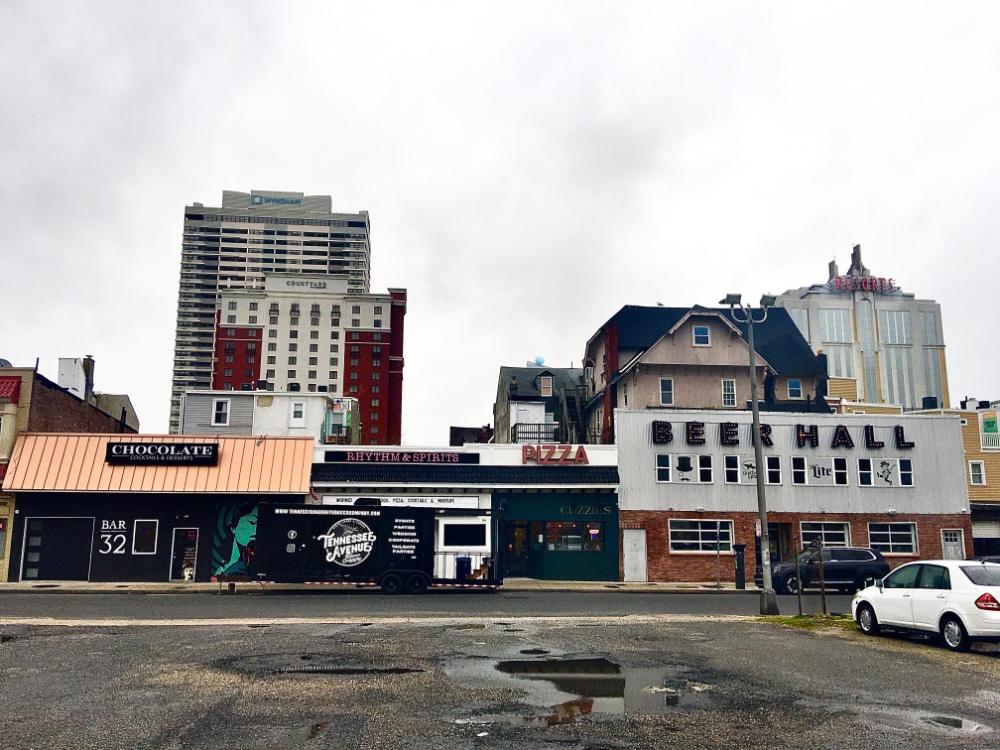 The Orange Loop is AC’s emerging foodie strip on Tennessee Avenue. I enjoyed quality comfort food, blissful rigatoni and meatball sliders at Rhythm and Spirits. Just under the happy hour cutoff at $5 each. Four TVs over the bar draw one from the decor, over the top eyesore loud for the older crowd. Bathroom door doubles as a casino deterrent.