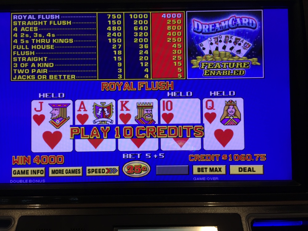 In Dream Card, you are paying those extra 5 credits for the periodic opportunity to improve (sometimes very significantly) your starting hand. But, the payoffs are based on only a five credit bet.
