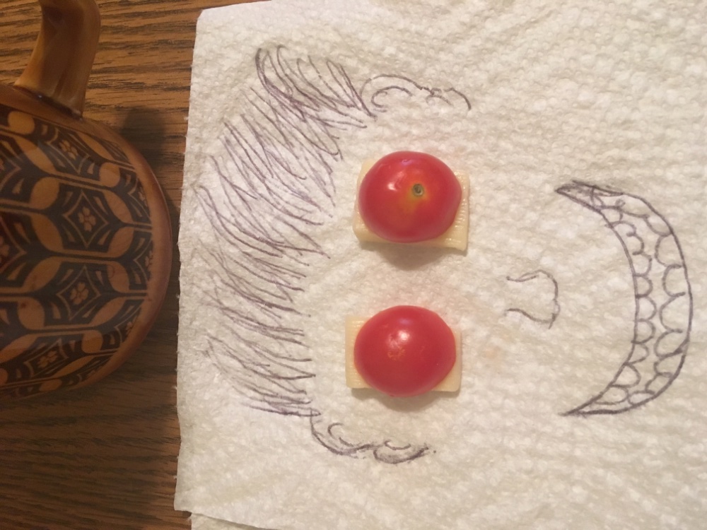 Morning treat after my walk. Extra sharp Italian table cheese and cherry tomatoes from the garden.