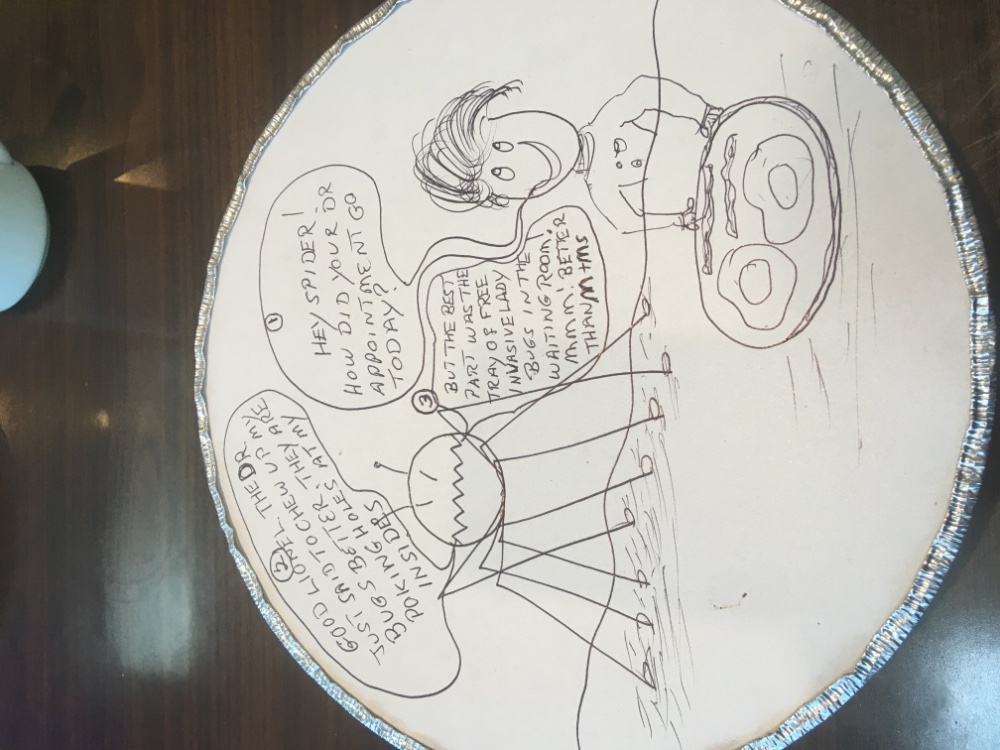 The latest scribble on a takeout container. PS. Lionel is filling in for Lio who is on vacation.