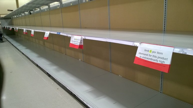 Now yes we got over run. But the problem is we can't get product. What we do get is gone by 10am, we just can't get the product. Our supply chain is being cut off. Something is going on at all stores. They make TP every day but comes in like the world is out of it.