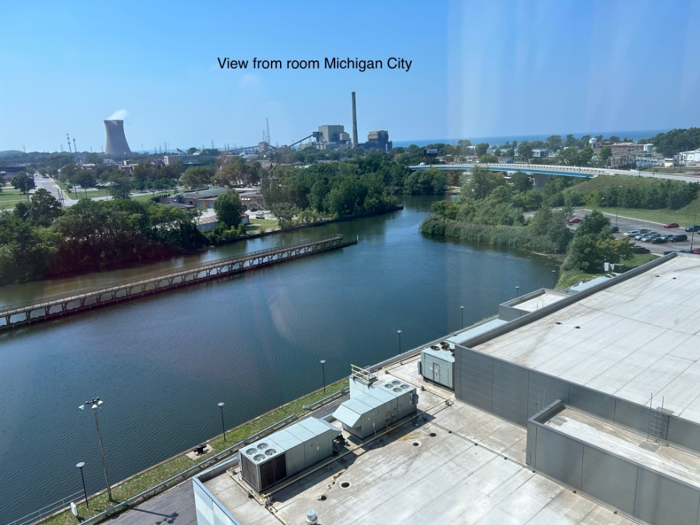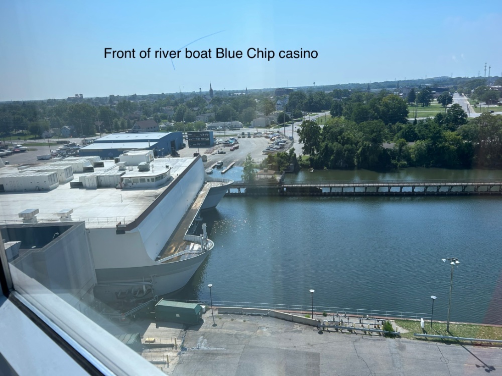 Thursday August 24. We drove east out of Illinois into Indiana under hot sunny skies. Indiana was noticeably flat land great for farming. Illinois gas was expensive around 4.00 per gallon but Indiana a bit cheaper at 3.80. Arrived at Blue Chip casino in Michigan City Indiana for a one night comp stay as this is another Boyd property.