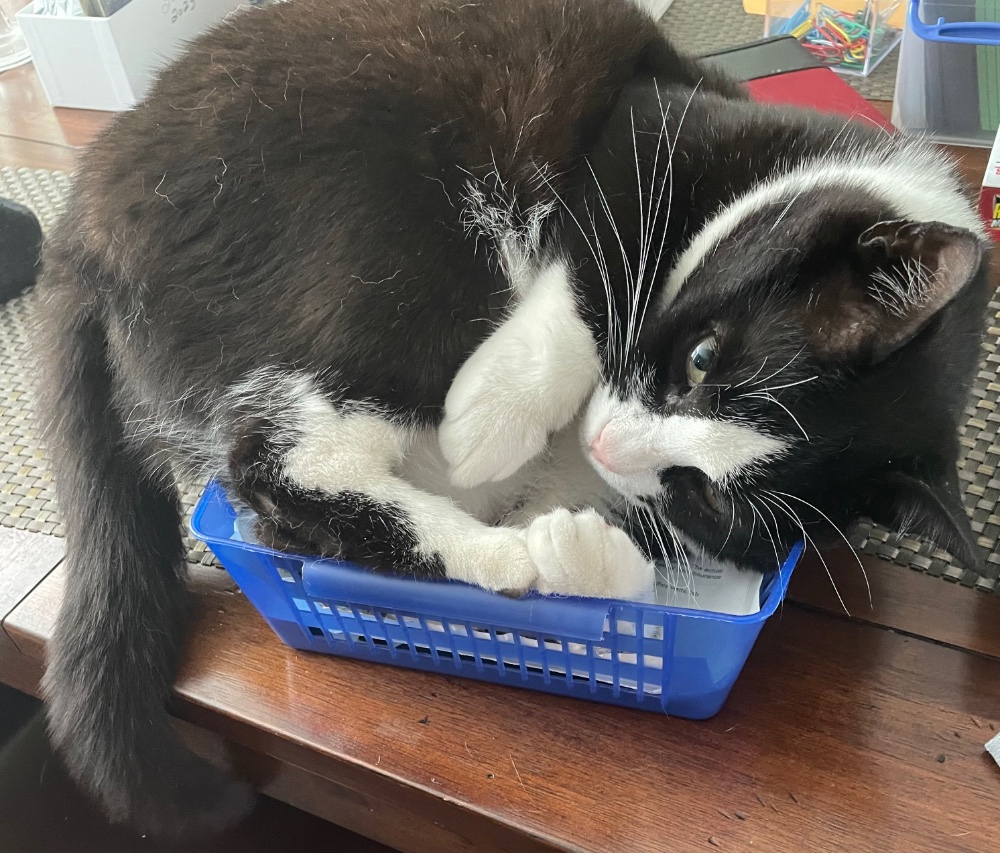 Thanks. It really is and the ultimate stress relief. We have several miles of beach all public and even free parking at one of the parks for non residents. Today is 76 and low humidity. Plan a long walk when my chores 😬 and appointment is done. Speaking of stress relief, here is my laugh of the day. My sister’s cat in Sonoma trying to get comfortable and trying to sleep in a tiny basket.
