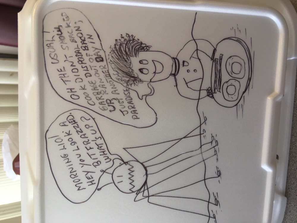 Olds, never draw a cartoon on a soft napkin at the diner (or anywhere else for that matter). :lol: