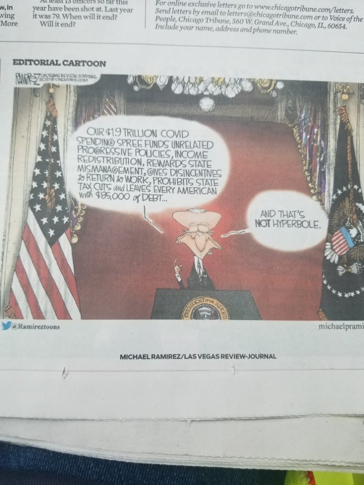 The bottom line is the Country has a ton of work to do still in the midst of an unknown further Covid threat and also from countries like Iran who probably are enjoying every minute of this big tug of war between Conservatives and liberals just waiting to pounce. I will never believe long term handouts are the way to go.