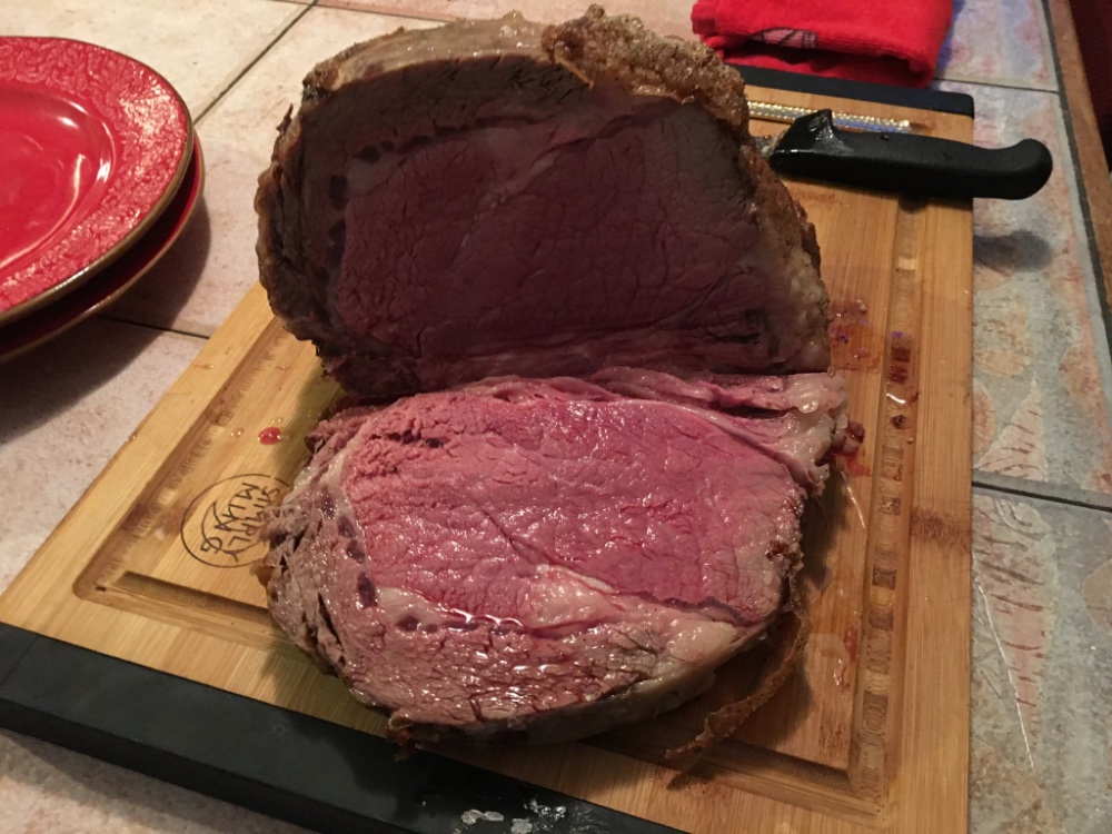 Make sure your rib is at room temperature, this is very important. Pre heat oven to 500*. Rub rib with olive oil, season with garlic salt and black pepper. Multiply weight of rib by 5. Example 7lbs x 5 = 35. Place rib in oven for 35 minutes, turn oven off. Don’t open door for 2 hours. Perfection.