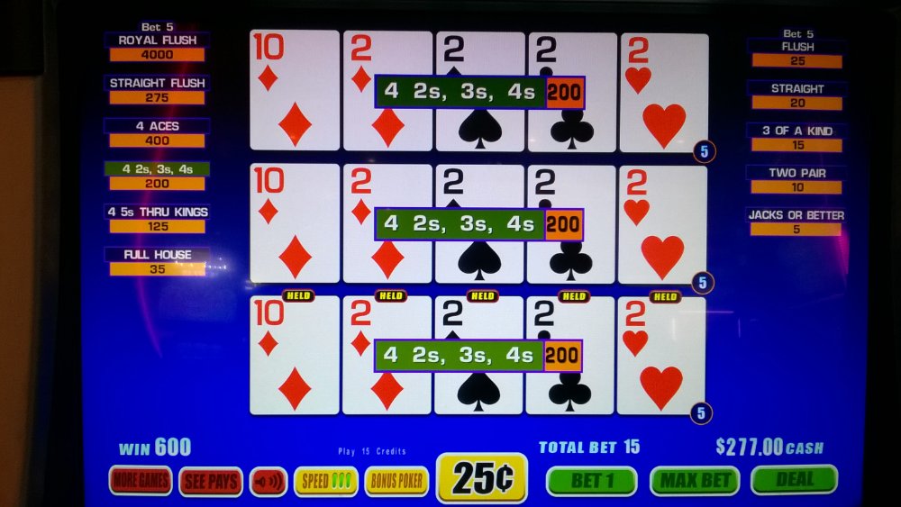 Some really nice hits. Deuces is my game. The machines look wacky to me. Never seen them, but the Deuces look fine.