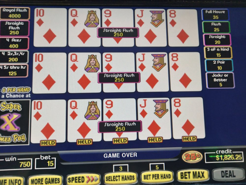More hearts. Took a quick restroom break then came back to triple play and scored a dealt straight flush.