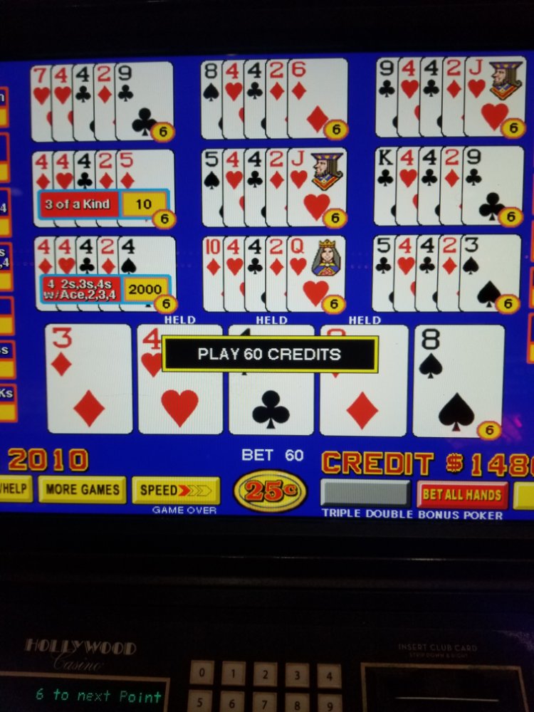 Work put me near enough the Hollywood Casino in Aurora, IL today that I decided to stop in for lunch. I noticed that their sole Quick Quads machine was vacant so I decided to test fate and seeded it with $1,000.00.