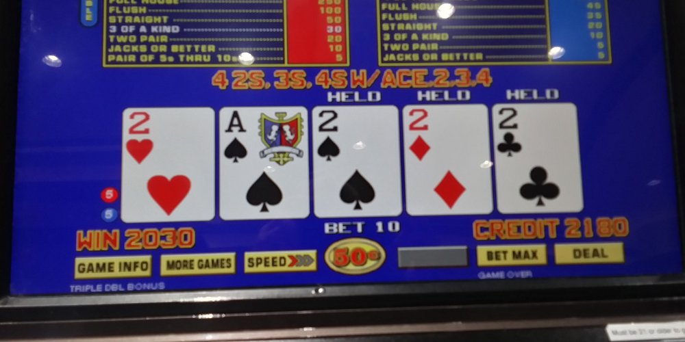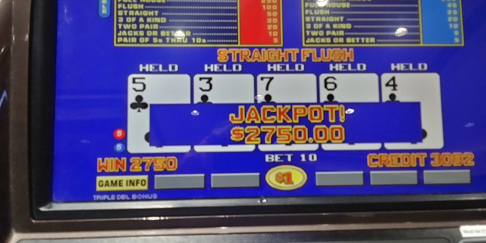 A once in 72,193 hand twice within a few hours. Besides the hand pays and other quads, I was getting dealt straights, flushes and full houses and filling in to draws when not dealt. It seemed like all the "dud" hands and disappointments of 2024 were being rectified. Ok, maybe not all of them but a good portion. Only a couple things missing from today's bucket list. Not long after the slot attendant came with my fourth check- deliverance: