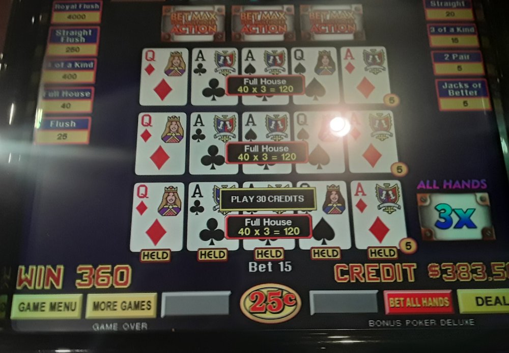 Always nice to find such a nice play on that game. Usually it's a lonely 2x or 3x on nickels or dimes. Best hit was a 2x on $1 DW Bonus, got dealt 22AAx and caught one quint aces for $800.
