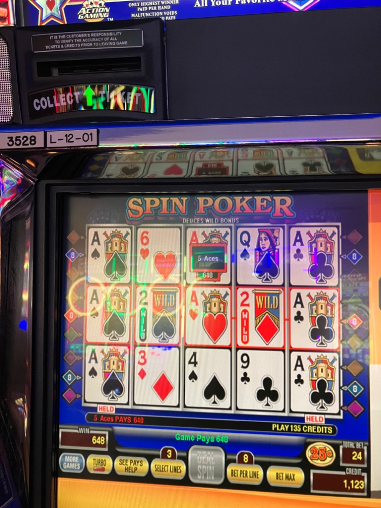 I agree, not bad. Is that the best on the machine?olds442jetaway wrote: ↑Thu Oct 19, 2023 10:00 pmDouble Bonus Deuces Wild. 98.61 paytable. Not bad for nickels.