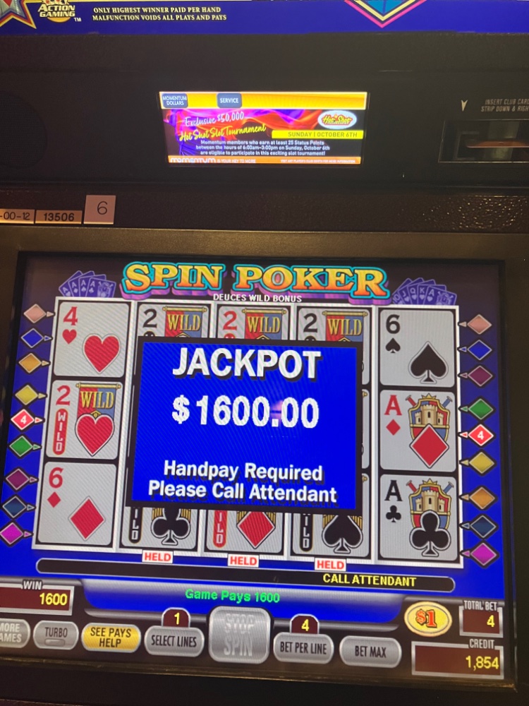 Thanks. The concert was amazing. In their mid 70s, still sound great, no breaks, packed with energy. I finally caught a nice little one before the concert and then broke the 7/13 hand pay ice with a nice quad deuce hit on Bonus Deuces and caught the Ace as well that doubled the hit to 1600. Taking a small break till Wednesday evening with the Mrs. after a get together with her cousins an hour or so from Bizarro.