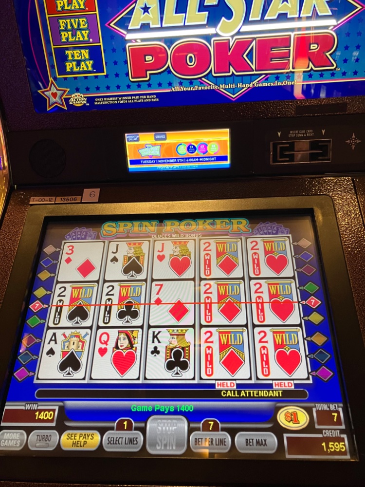 . One of the times it was 5 Aces. I should have taken a pic because it was a nice hit as well for 400 bucks, but I was on low battery at the time. As usual, forgot to charge the phone on the way up in the car.