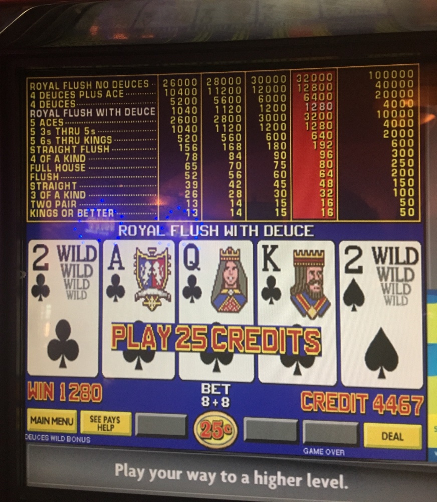 I know Double down Stud is only a 97 percent game, very hard to find anymore, and is extremely popular and busy on the few machines that do exist. The payouts are big on the better hands like 5,000 bucks for a dealt 5 x2 quarter Royal and even what I got 2400 bucks for a 3 buck bet doubled after knowing I would be a winner on the first 4 cards and hitting 4 deuces. I have a theory why casinos aren’t putting in these 3 percent moneymakers anymore.