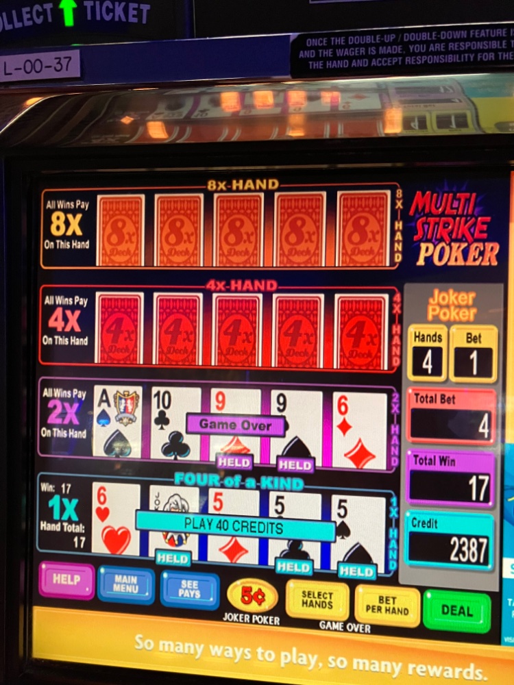 So far so good. A very old machine and tough game. Started with 2,000 nickels. Playing 2hours so far. It also hit a bottom line straight flush with a small bet. No pic on that one. Later nickel JOB. Single line.