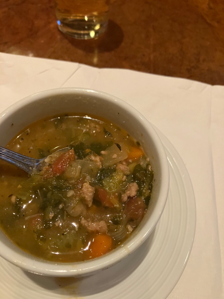 The other picture is a bowl of delicious Tuscan bean and sausage soup I had Sunday night in the lounge at Bizarro!