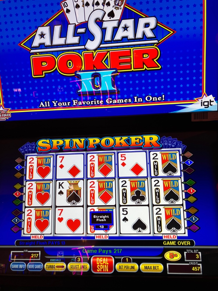 Solo trip planned for tomorrow Eve assuming the basement doesn’t flood from the 4 inches or more of rain we are getting now and overnight. Most likely will stick with 5 and 10 cent Triple Spin Poker. Max bet on dimes is still 13.5 a deal do I will try and stay away from that. This won’t be a big budget trip.