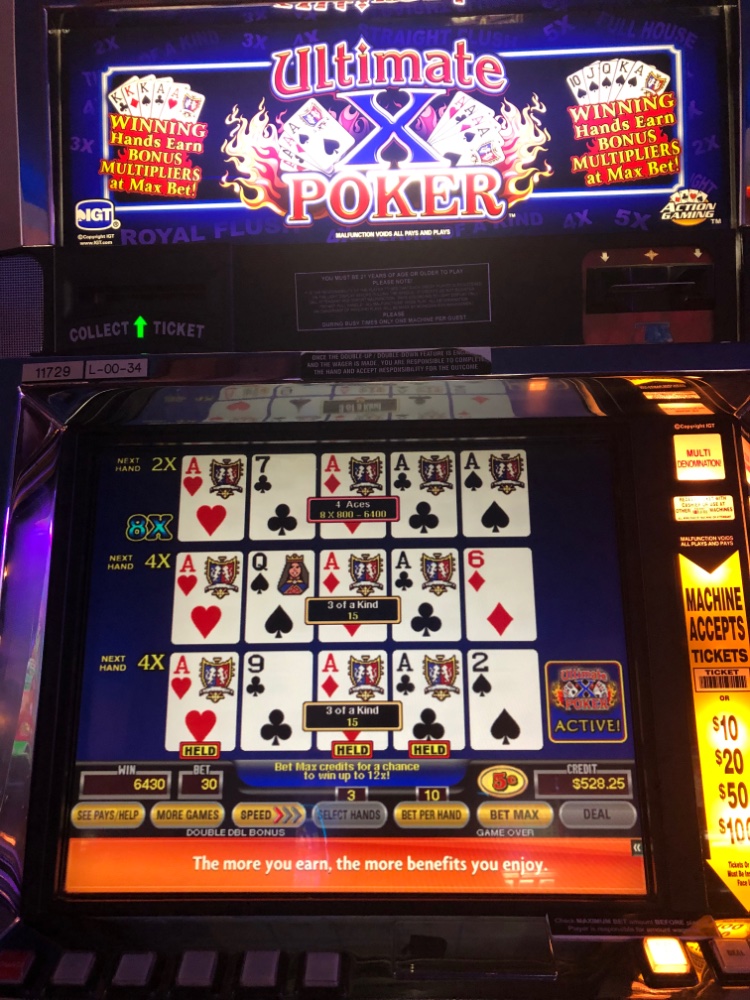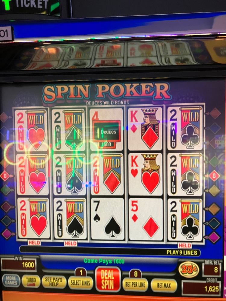 Thanks OTA and all. We are still up here and looking forward to a nice lunch soon before heading home. We both had a couple of nice hits. Pic of mine attached and the Mrs soon when she sends it to my phone. Mine was on an inferior paytable game, but it is an 800 for one machine, so it works better for me with the Clone. We are about plus 300 between us. The only thing we will play on the way home is our 25 in free play. We got that by combining our play on one card. Triple status points yesterday and today. Anxious to get back outside in the nice weather. Here comes the Mrs. Lucky Aces times 8. Wow!!