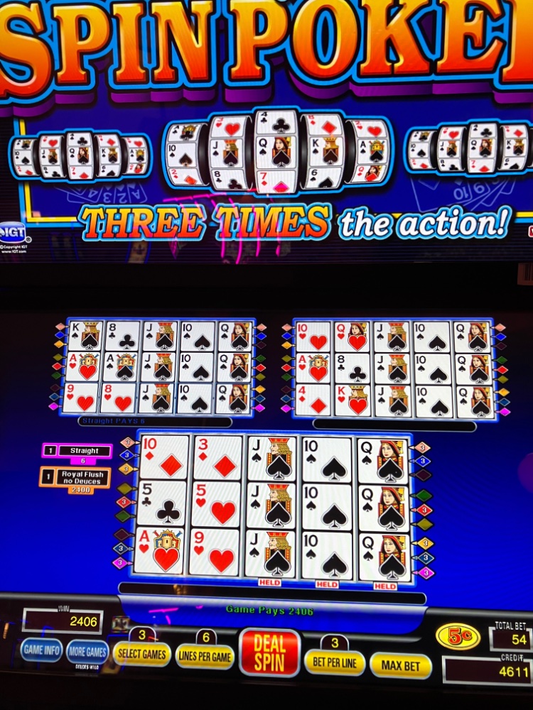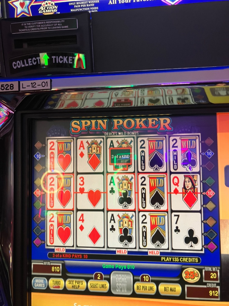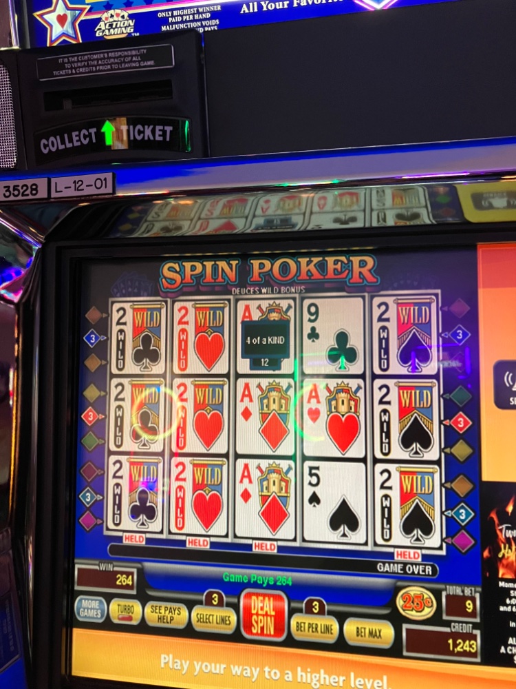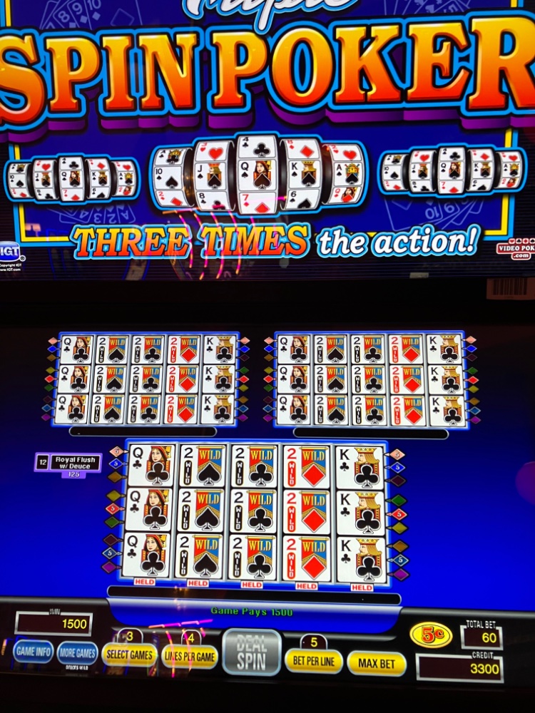 Mrs still on an upside. I attached my hits, but not enough quad deuces or Royal so a BIG session loss. I attached 2 of the Mrs best hits, but she had more almost as good!!!!!!