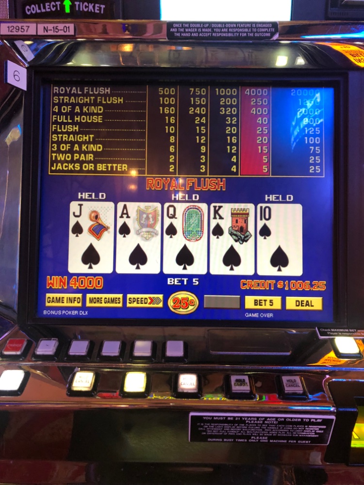800 nickels for each Royal. Quad Deuces is 200 for bet one. At least with a 96 percent paytable, the Royal does pay the correct amount for bet one. I was playing the clone but advancing on the lines instead of amounts per line after a loss of 6 times my bet amount. That is not always a good idea, but I was way behind again on Royals and also quad deuces. I’m determined to play small the rest of the year between losses so far, the lackluster market, and big health expenses ongoing even after insurance.
