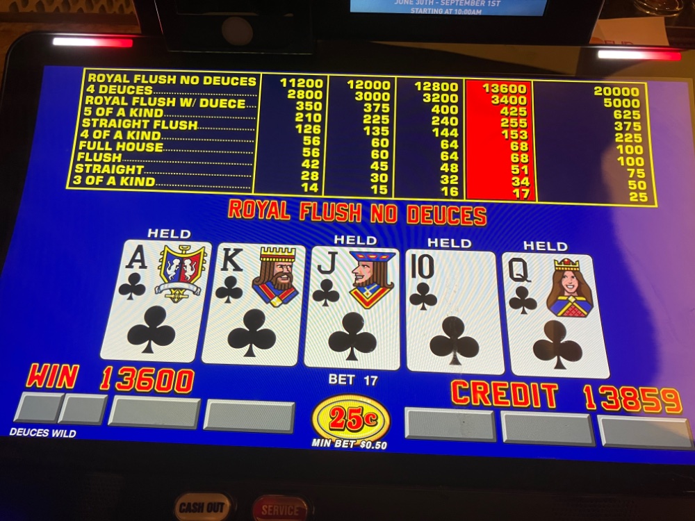 This trip, I stuck with single hand play, following the clone. FINALLY, I landed a Royal with a sizable bet in. Pic attached. Long way to go to be even for 2023, but this helps a bunch. This time, I quit and turned in instead of playing. We were able to get out all of our small free play as well for gas and tip money. Can’t forget the Animal Shelter. That’s on my list for first thing tomorrow. It’s on the way to my favorite breakfast diner too.