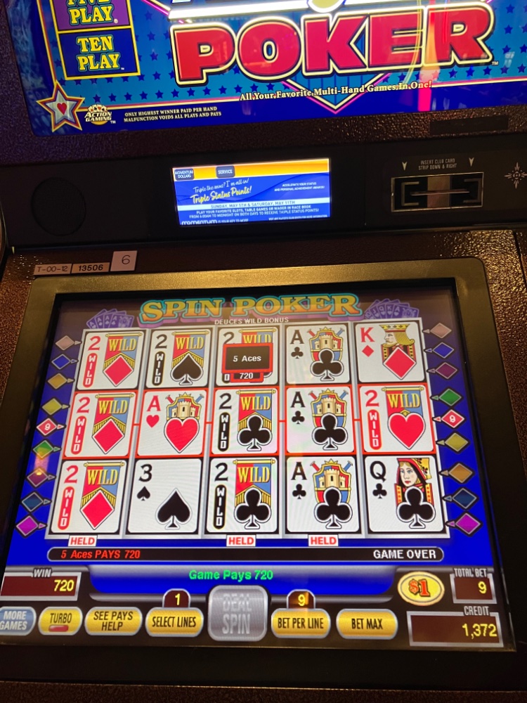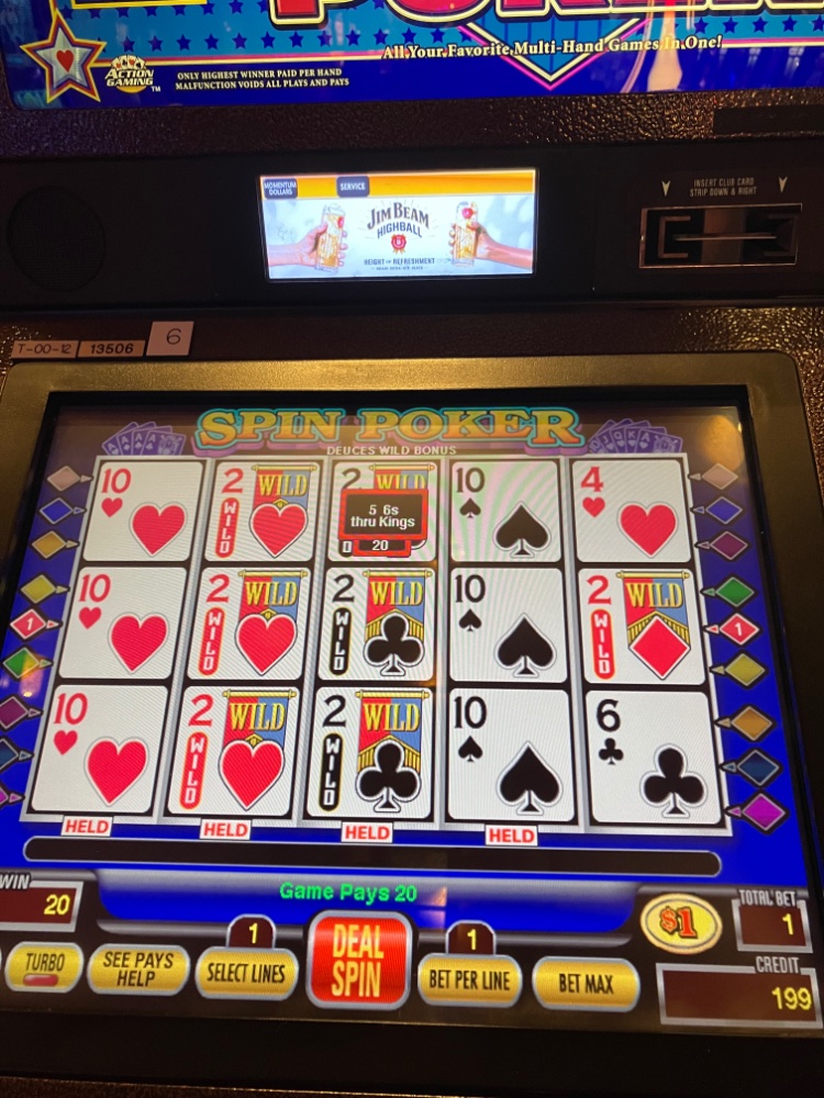 My 98.8 Bonus Deuces Wild Spin Poker Machine ( 800 for bet one ) got hot and stayed very good all night. Played my 20 buck free play at 6am this morning on a quarter machine that one was hot too. Time for a rest before driving home. 🏠