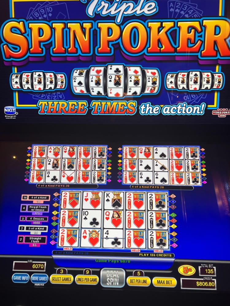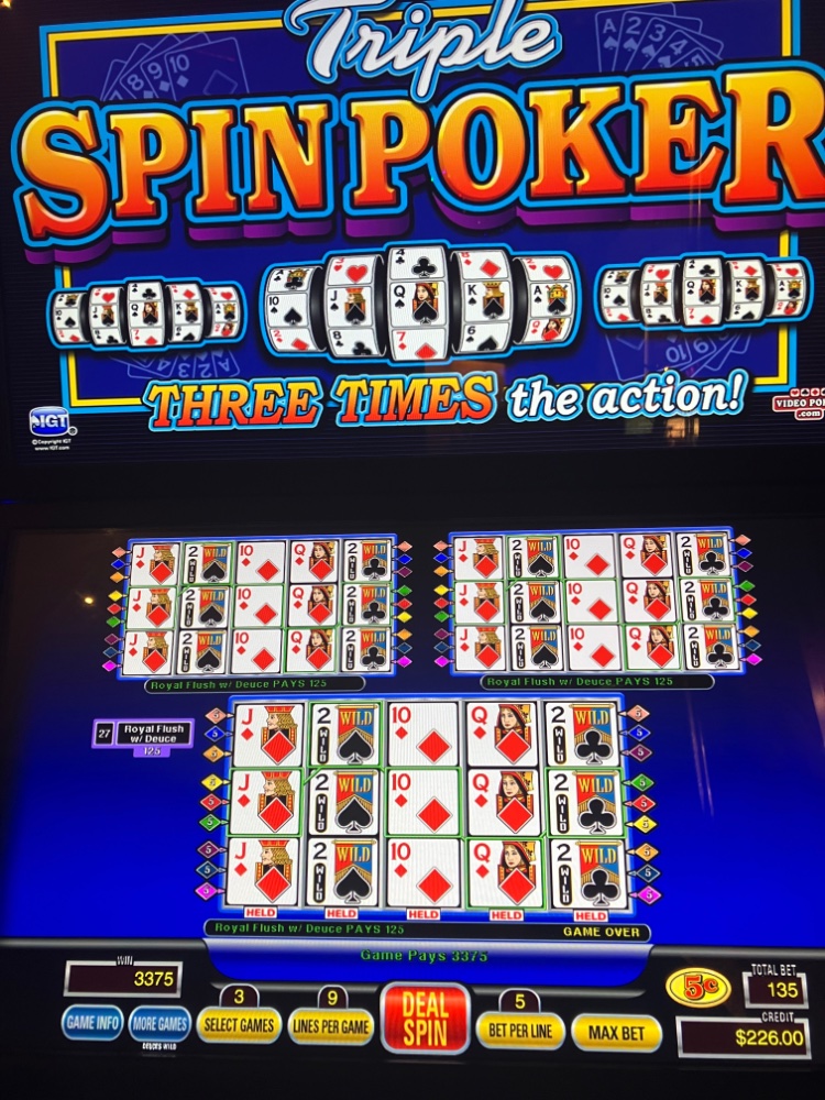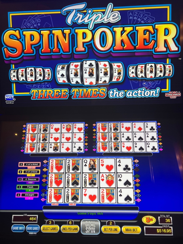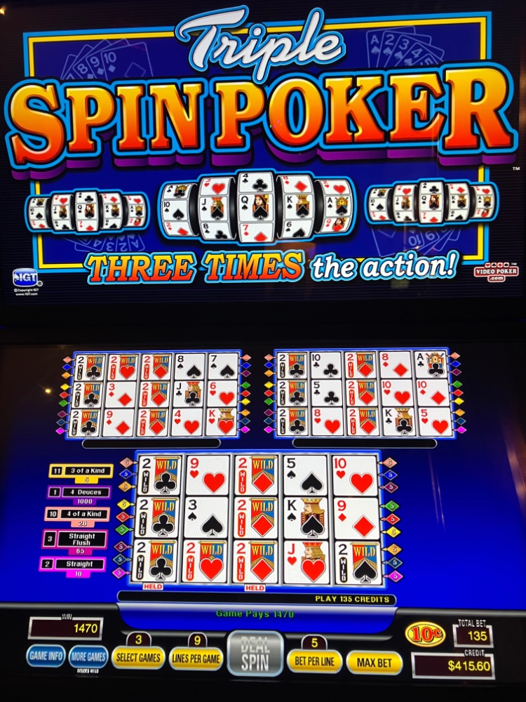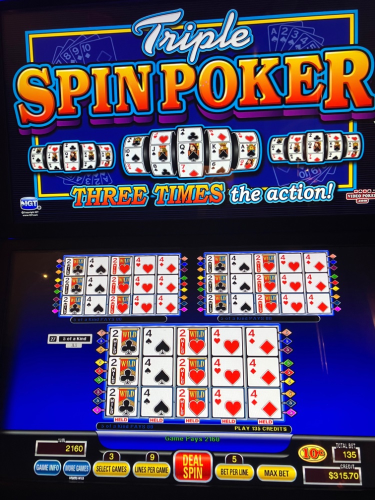 We missed the party due to shoveling and a slow trip on the roads, but overall so far so good. I broke my all time record of successful sessions. Same game. Lots of play. Still up there. Home later. Frigid cold and ice on roads so no hurry. Sorry to clog out the website with good I even have a few more. I didn’t post. 10 consecutive positive trips is the most I’ve ever had by far and it only seems on the triple spin poker game playing the martingale clone method i’ve been working on for more years than I can count. I don’t want to call Yet but if I get 20 consecutive positive trips, I will declare a success at that point. Here are most of the pictures of the latest good hits. Has a few post herself probably tomorrow he’ll send them to me and then I’ll put them here.