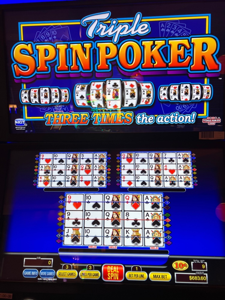 Thanks for the encouragement, Ted and Bill. I was able to find an8/5 at least better than 7/5. Sometimes it’s good when things come in threes especially when they’re Royals. 😊 on the biggest hit I screwed up and took the picture late but I had Max’s bet in so it paid 4000 dimes. The picture I’m posting is just before I started my next bet but it shows the royal I can’t believe the first royal I only had $.10 of that but at least the machine pays 800 for bet one. The second royal paid 1000 that picture is accurate and the third one was the big one and at that point I decided I better just play with 20 bucks and head for the hills. Well, at least I headed for bed which was uphill on a high floor. Also hit aces a couple of times. No kickers will a session like this repeat who knows at least I had fun out here playing it. Bye the way, these were all on the same machine
