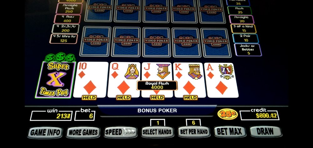 Too add: FAA, in your quest for a $4,000.00 hand pay you are moving up in denominations that you really shouldn't be playing at. When you did hit the aces you only had $30.00 left on the meter so you were 3 hands from not hitting them unless of course you started short coining the balance of the $30.00. This would have resulted in another negative day. You have champagne dreams on a Blatz budget.