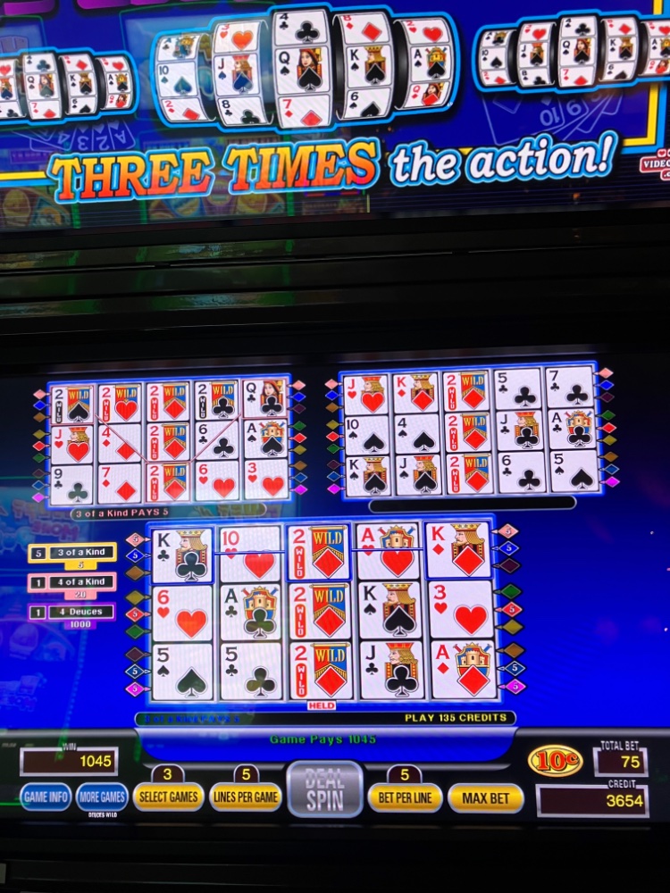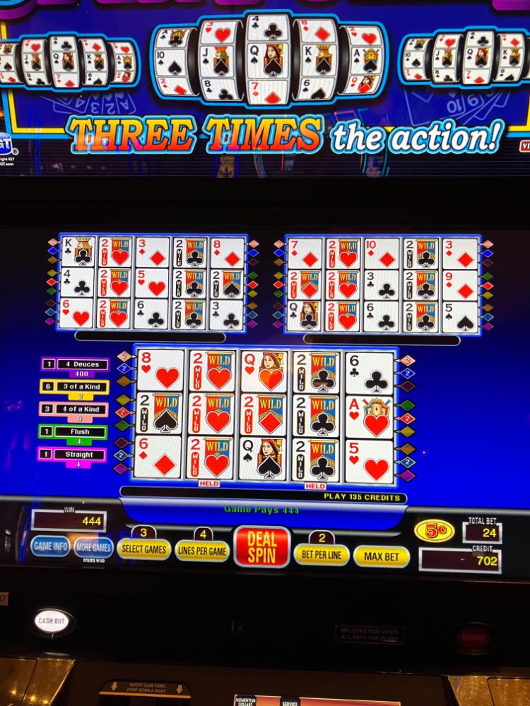 Thanks. Still at the casino, but all done playing. Will be heading home after some rest and light lunch later. The trip ended up well so far. I started out with 20 in free play and was able to get that up to over 100 on Triple Spin Poker Deuces Wild. An awful pay table around 96 percent, but the Clone pulled me through even without hitting a Royal. I upped me bet to dimes after it looked like the way I was playing was working OK. My bets did get pretty high, but with so many lines, the variance wasn’t too bad. I ended up just around 300 bucks. No complaints. The weather up was terrible. The ride home looks to be a bit better. Next trip is planned for tomorrow with the Mrs. I plan to stay with low denomination rather than hit the ATM. Everyone stay safe and well also. Some pics are attached. I finished up on dimes.