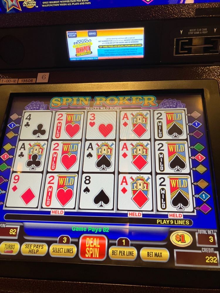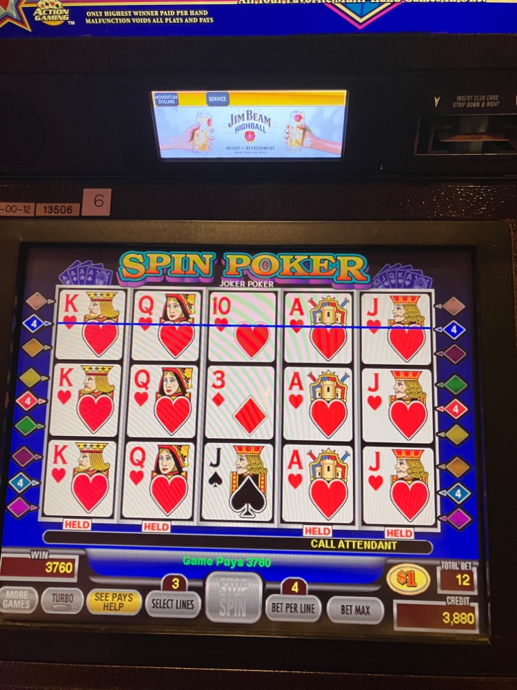I decided to take ten minutes and check out a lot of the photos on my pretty stuff thread including of course the horses, dogs, and kitties before driving up to Bizarro late Wednesday evening. Definitely a mood booster. Got there about midnight and came home yesterday evening after catching up on the news etc. I don’t know if the photo session helped or it was pure coincidence, but I had a long, but really good session and toughed out the dud streaks in between. I had a lot of decent hits ( photos attached ) and one great Royal on Joker Kings. Love getting paid 940 for one instead of 800. The trip out a nice dent in some of the recent losing ones.