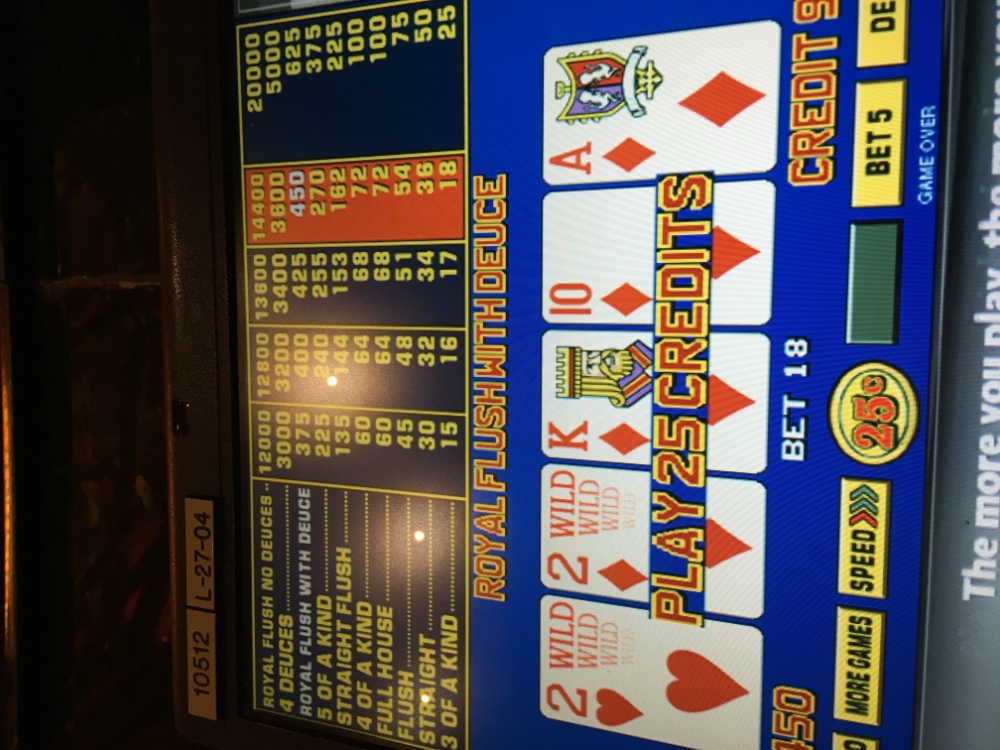 Finally taking a break to get some rest. I still need 52 more satus points. To speed up that process i played dds deuces for an hour also with the clone. It was cold then this......and as you can see, i didnt even have enough credits left in the machine to make the next bet.