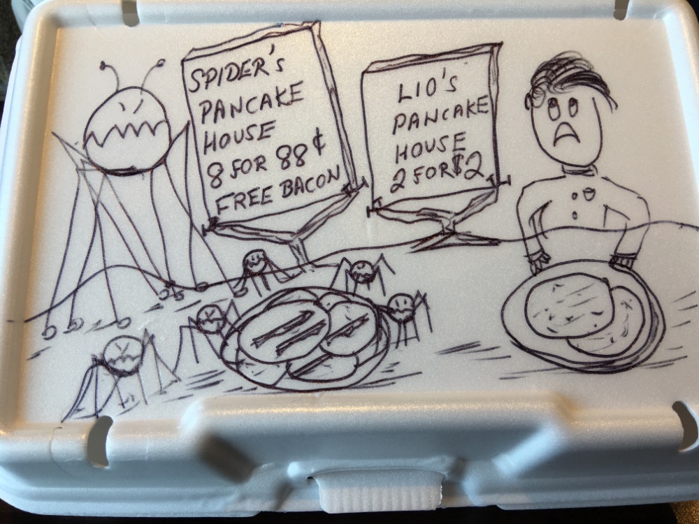 Latest scribble done on my late breakfast takeout container.