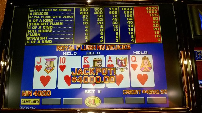 Set out for the 4 Deuces once again, no luck once more. 3 off the deal 4 times could not bring them home. Moving back and forth on this bar top for most the day. Another 5000 hands played.