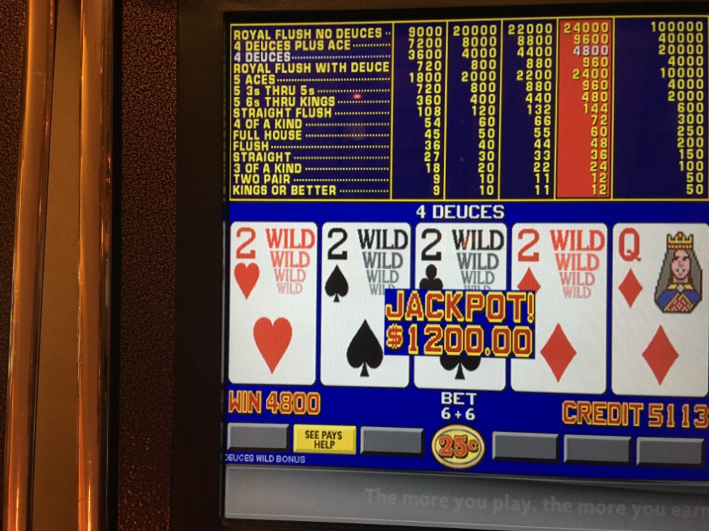 The 5 4’s came in first abd as you can see I was in trouble as my bet was up to 20. The dealt quad deuces cane 20 minutes after the 5 fours so my bet was much lower.