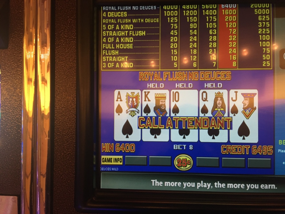 After a short break, I budgeted $300 to play the very risky double down stud bonus deuces wild game. Only 97%. However, I was extremely lucky to hit the Dealt quad deuces. I immediately headed home. Too tempting to stay and play.