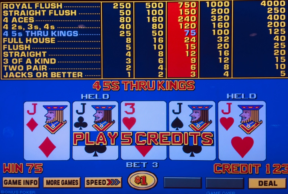 you were playing $1 job when you hit the aces;on bp that would have paid 400.on the quad 3's i was wrong i thought you were also playing dollars not quarters.quads 3's on bp pays 200 so ok not $600 total but $450.