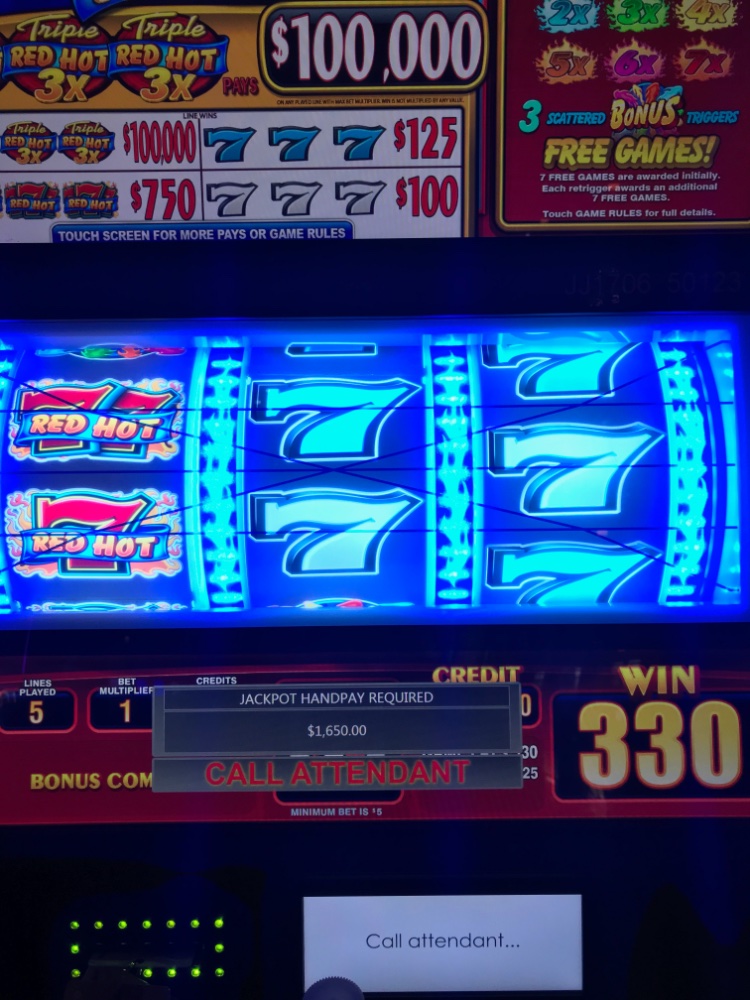 That's a stunner, congratulations to Carrie! Top award slot hits are rare. It helps to have the 5 paylines, but it's probably rarer than a video poker royal flush. If you bet $25 on a vp machine, you'd only get paid $20,000.