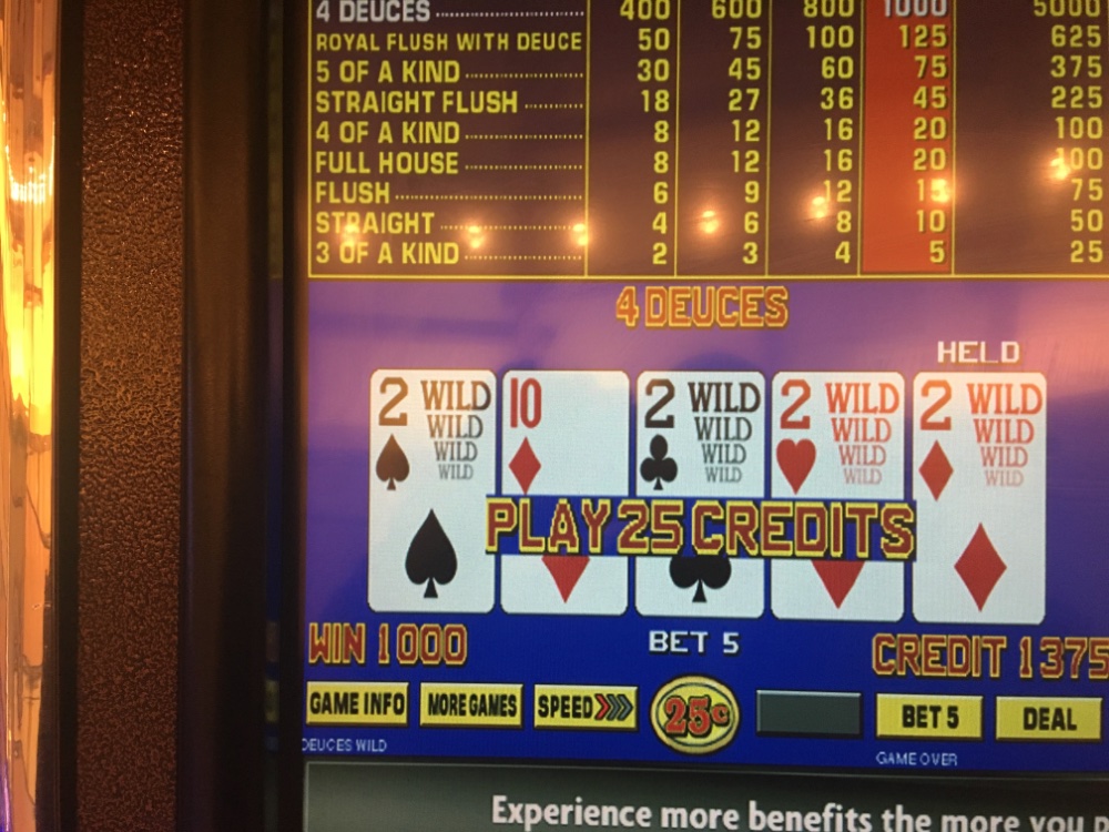 I ran up just for a few hours. Played the Martingale clone as described above. Bet got pretty high. I got a junk hand and tossed it. This was the result. The machine auto held the cards on the redeal. This is the same machine that gave me a redeal Royal a few months ago.