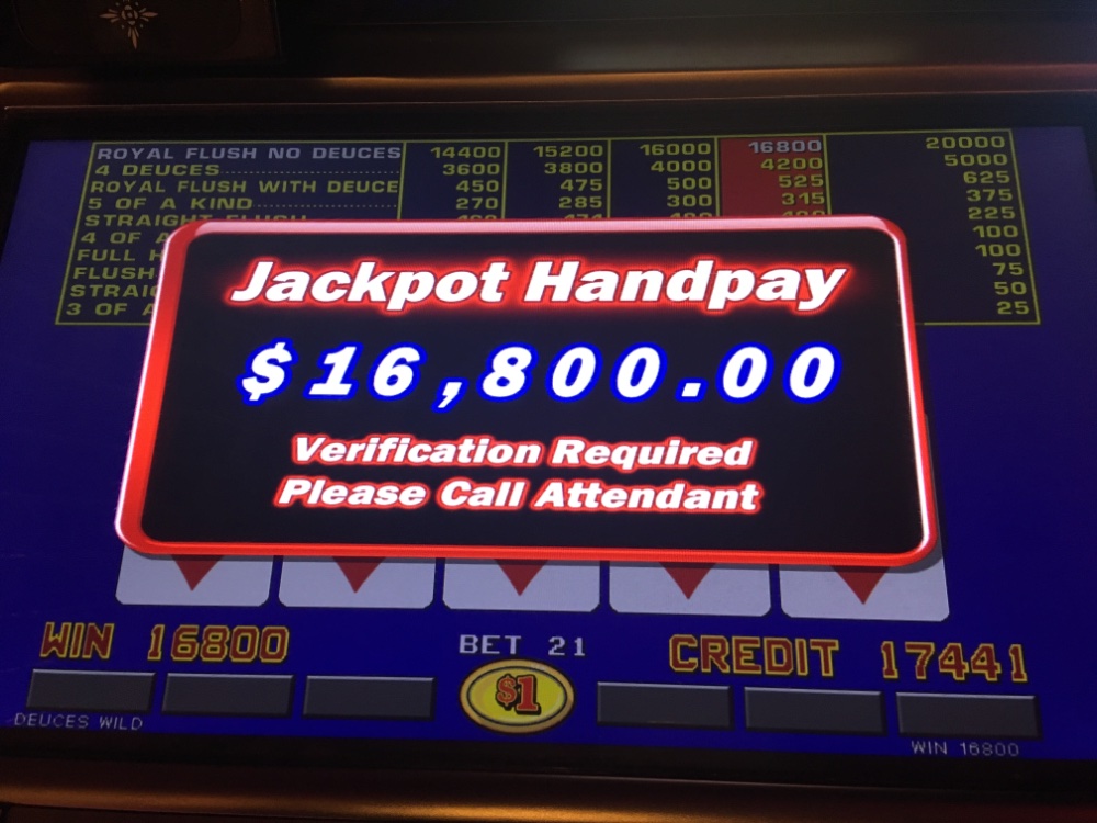 This is so hard to believe. Still sinking in. I did ok playing last night the usual way and was ahead about 500 bucks on 9/6 job. I decided to switch to Deuces wild about 5 this morning and got into a very bad cycle with the Martingale Clone. I had to go from quarters to halves, then dollars. Back and forth with the trend way down. Stupidly, in hindsight I lost all of my 500 prifit for a long 8 hour session and had given back 400 bucks of my 1,000 bankroll. Total discipline failure, but I kept getting dealt 3 to a Royal as I was losing and not connecting. This one connected. Needless to say, I quit then. Just stupid blind luck. Even though this hit is phenomenal, I must learn to get back to hit and run basics and never give back a 500 profit again. Needless to say, I’m a happy camper, but still mad at myself.