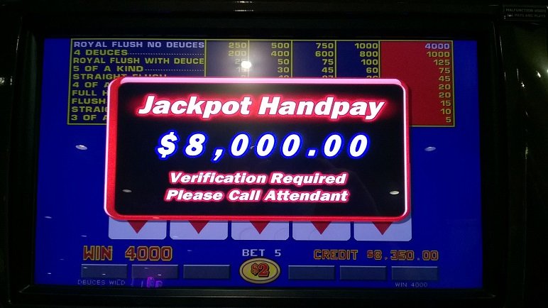 I been moving up slowly on the denomination level playing more $10 hands and a few $25 hands here and there. Just want to not have to play so many hands a week at 5 bucks a crack. Today was Senior day, starts at 7a to build entrees for the first draw at 10a. At the 9:30 mark held 2 to the royal and bingo! My biggest royal to date! No luck on the draws but the royal made my day.