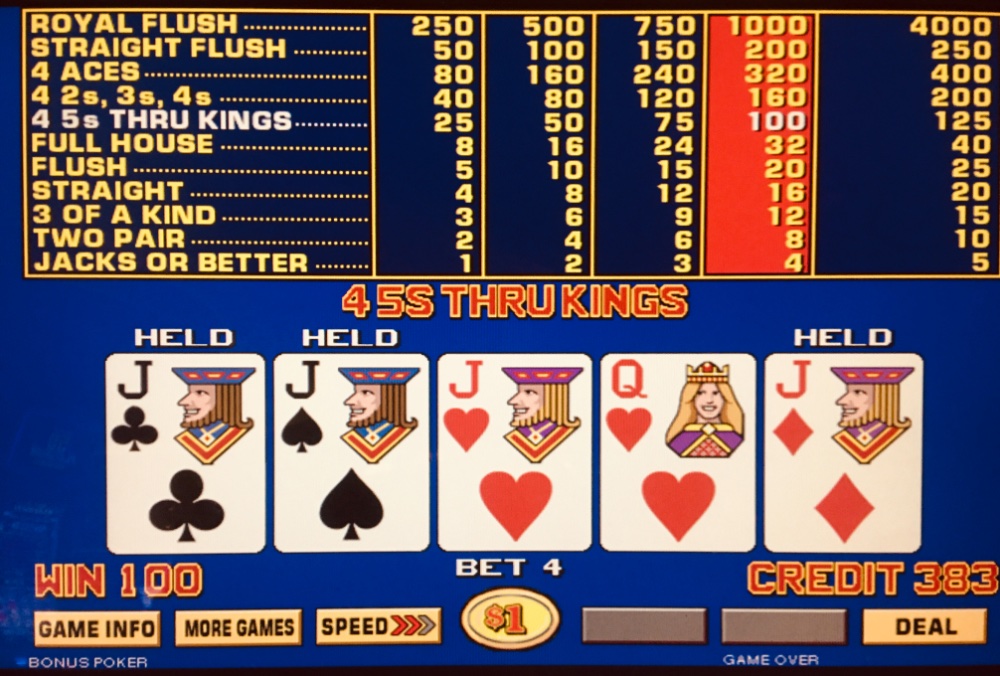 Sad Saturday. I won $42 on $25 Caesars BP FP. I won $25 table FP on a seven craps hit. I made a few buck on quarter JOB, where I should have stayed for hours. Off to Harrah’s. I hit a max BP quad seven. Nine minutes later, I hit a max quad Queens. But I decided to play in the Cove. I hit one quad in 2.5 hours. I am done with that room. Net Day: -$497. 449 TCs.