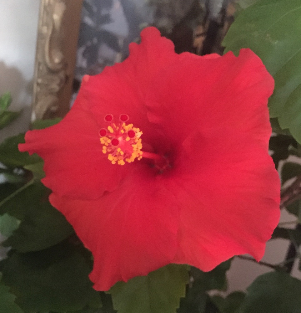 Brought this in for the winter. Blooming inside today. It loves the sun. Not Mohegan Sun. Heeeeeee