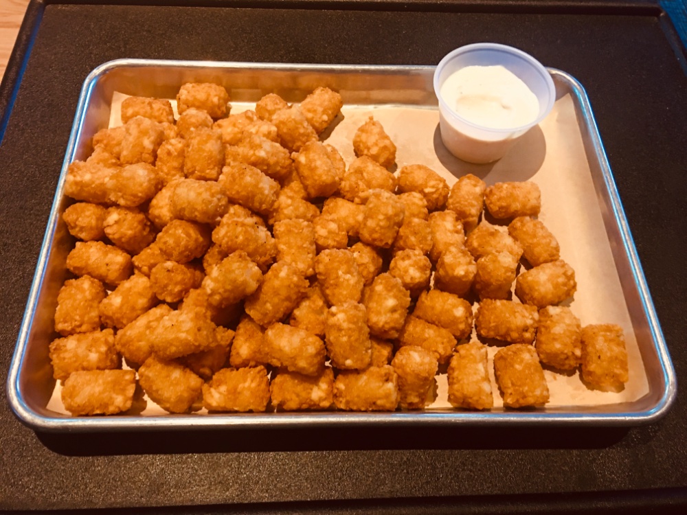 My small win today was no cause for celebration. But I wanted to experience the new Bally’s sports book. It was a rather sedate affair, as the $50 food and beverage minimum discourages patronage. However, Restaurant Week made this the best way to do BSB. Spicy Edamame is tossed in garlic, oil and sriracha. I had assumed that it would be cold, but it came in a hot pot. I wiped off the spicy stuff and made sure to discard the tough string on each end, which will never be digested. The grilled chicken Caesar wrap was very good. I cannot escape Caesar’s rule. The Red Zone Sugar Cookie is a cute treat. This feast is $15.21, so another RW was ordered. This time I got a raft of Crispy Tots. The waitress never asked if I wanted traditional or truffle oil and Parmesan, so I was simply served the former. She’s quite slipshod and not detail oriented; she would later forget to give me two boxes. My bill was still light. I got a GOAT Smash Burger and Amstel to attain the minimum. The burger was good enough with plenty of iceberg lettuce and tomato. Basically, only a big drinker or eater may consider BSB. I took home a ton of carbs between two heaps of chips and one of tots. Moderation in all things.