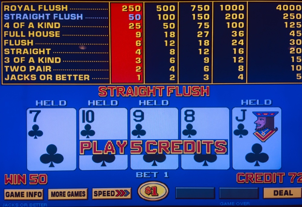 That's the "reward" for not playing full coin all the time. Can you imagine the whining if the situations were reversed, and the royal was hit, but at short coin?olds442jetaway wrote: ↑Sat Dec 18, 2021 11:37 pm... and a minor insult by completing the Straight Flush with a short coin bet.