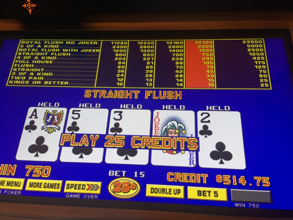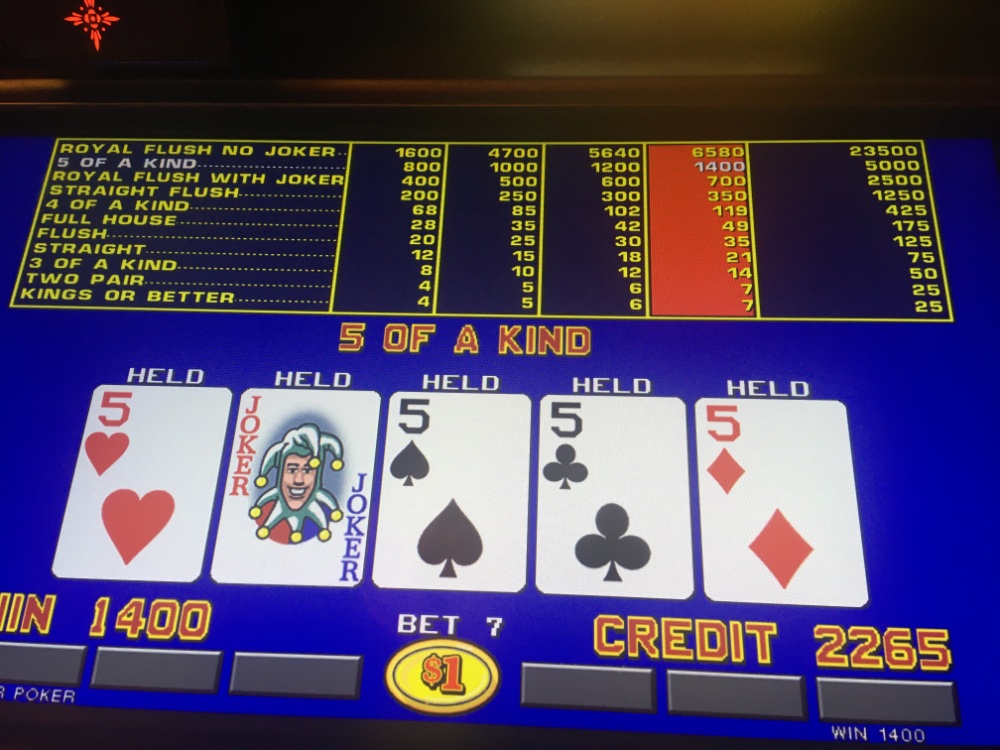 It was definitely a redraw the machine automatically puts the held markers on it when it re-draws the cards. I don’t know if I have seen that before although I think the last one I had did the same thing a year or so ago. One very strange thing is I was playing multi line Nickels deuces wild when I first got to the casino for several hours and even playing between three and nine lines I couldn’t hit anything. So strange. Then I go play a single line game and get the big four deuces hit and the Royal On the same machine. The other hits toward the end of the session We’re on a different machine. It’s just impossible to figure out video poker that’s for sure I guess if there was really good consistency they wouldn’t be in business. I almost give up making corrections to Siri. You never know what she is going to type including wacko punctuation and capitalization. I think it’s faster for me just to type everything, but I make a lot of typos as well because I have an old SE phone with a small screen and more often than not typing something without my glasses. That’s a senior for you!!!