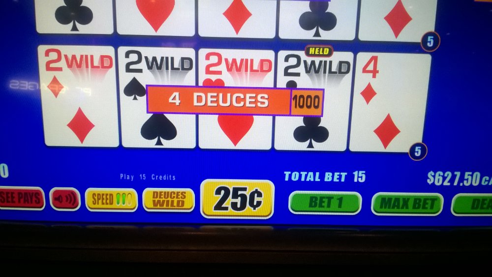 That’s a great day for sure. I have a quick question. You were playing the same pay table As I can get at Mohegan Sun on quarters. I can only get it on a single line game. If you are dealt a single deuce and say a suited 57 or suited 68, do you just hold the deuce and hope for the ducks, or go for the straight flush? I know there is a small penalty involved for just keeping the deuce, But I am just curious.